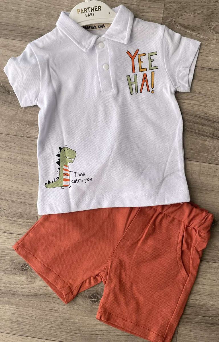 Костюм Partner «YEE HA!» коралловый, мальчик 9-12-18-24 месяцев оптом уп. - 4 шт.