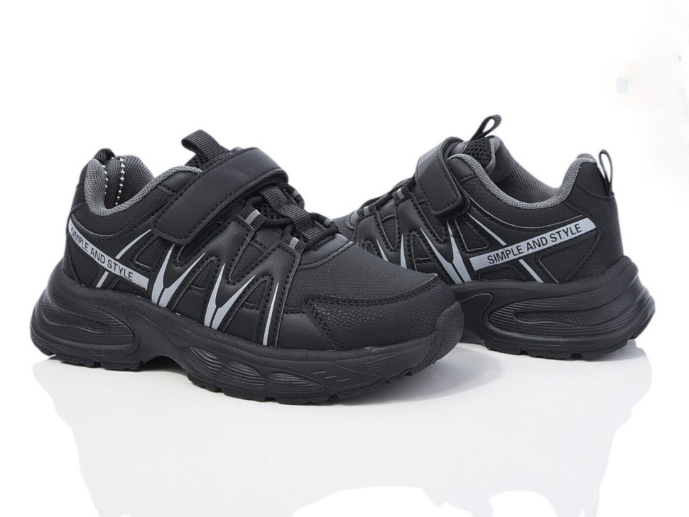 Детские кроссовки 11610А"Simple" черный, унисекс 33,34,35,36,37,38 размеры оптом уп. - 8 шт.