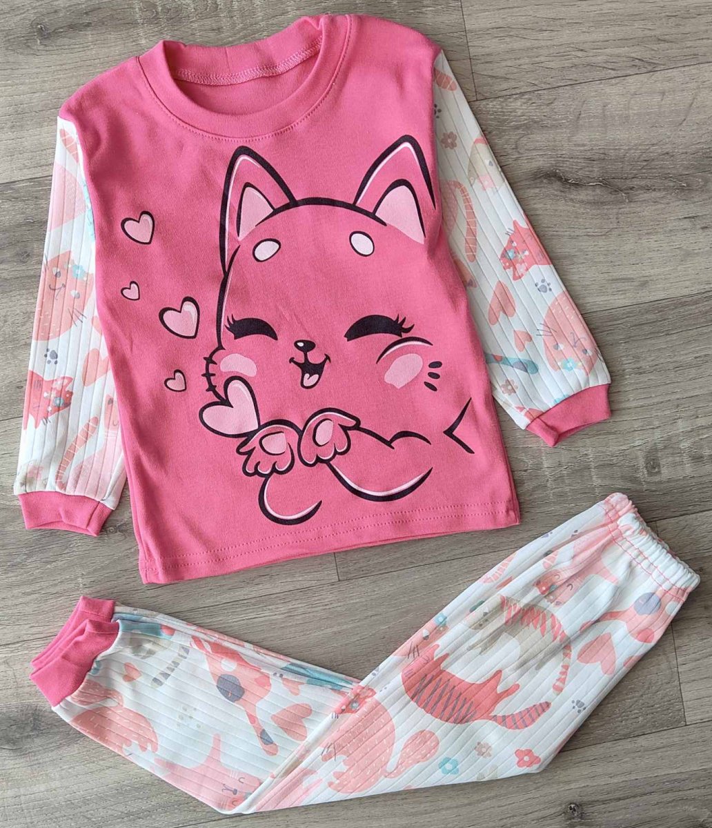 Пижама "Кошка" розовый, девочка 2-3-4-5-6 лет оптом уп. - 5 шт.