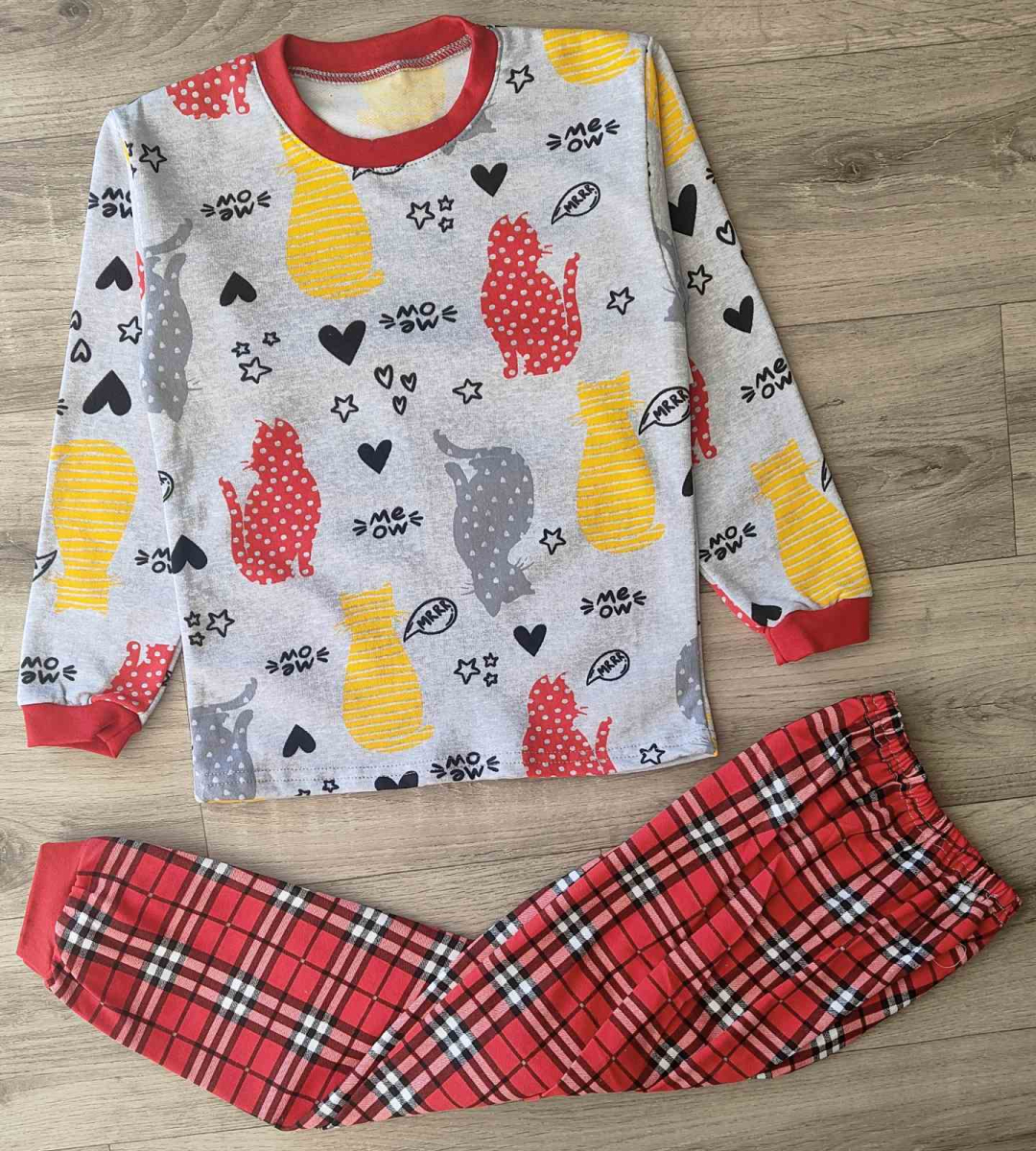 Піжама "Кошенята" сіра, дівчинка 6-7-8 років оптом уп. - 3 шт.