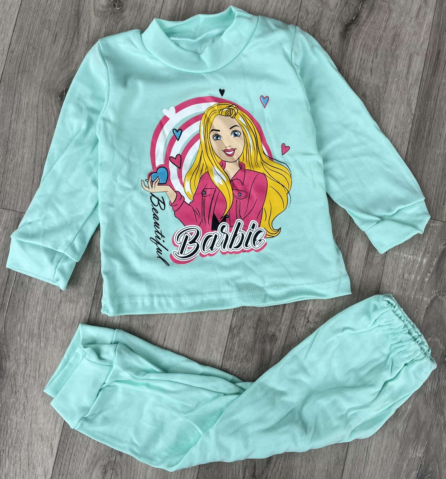 Пижама «Barbie» бирюзовый, девочка 1-2-3-4-5 лет оптом уп. - 5 шт.