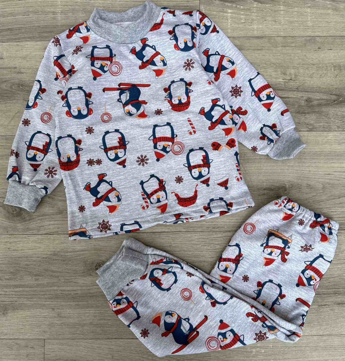 Піжама «Пінгвінчики» сірий, унісекс 1-2-3-4-5 років оптом уп. - 5 шт.
