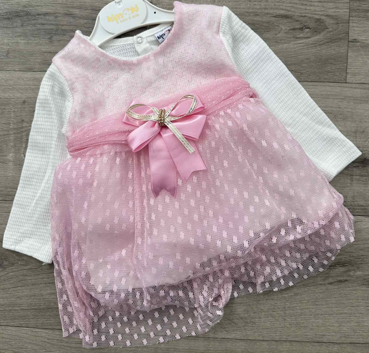 Платье Kimoki «Бантик» розовый, 9-12-18-24 месяцев оптом уп. - 4 шт.