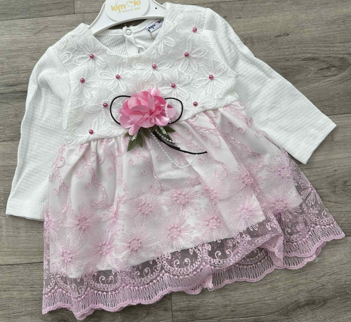 Платье Kimoki «Цветочек» розовый, 9-12-18-24 месяцев оптом уп. - 4 шт.