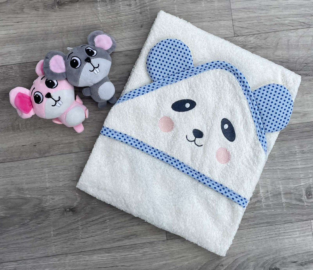 Полотенце Ramel "Панда" белое с голубым 80/80, мальчик, фото
