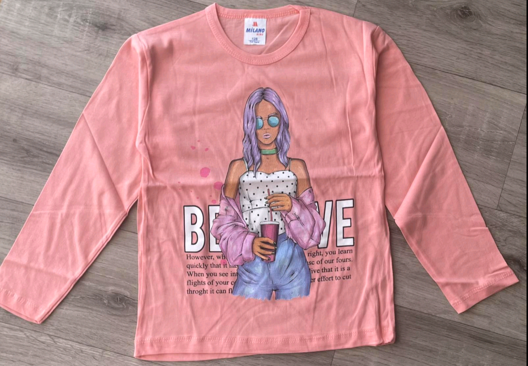 Реглан Milano "Believe" персиковый, девочка 8-9-10-11-12 лет оптом уп. - 5 шт.