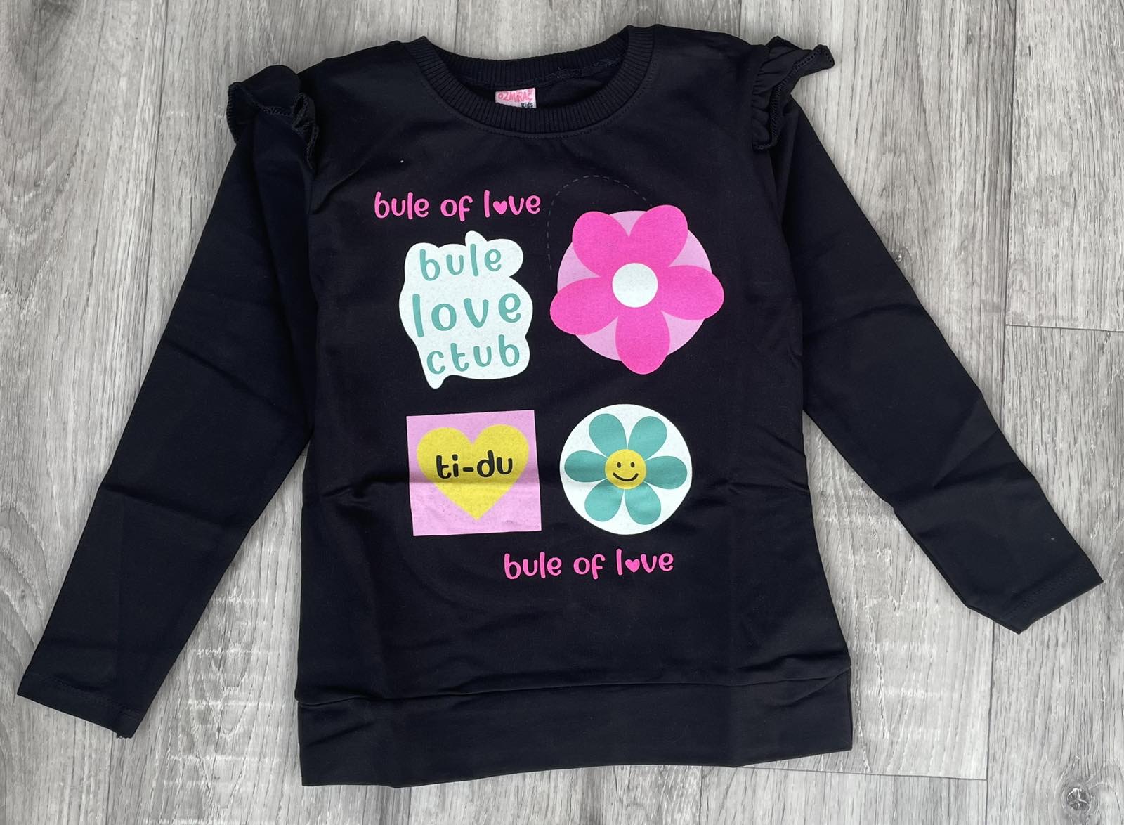 Реглан O.T.R «Цветочки» чёрный, девочка 9-10-11-12 лет оптом уп. - 4 шт.