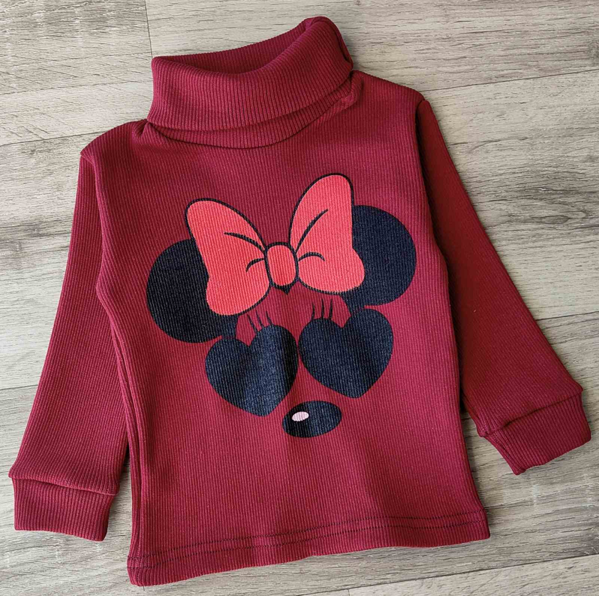 Водолазка "Мышка" бордовый, девочка 1-3-5-7-9 лет оптом уп. - 5 шт.