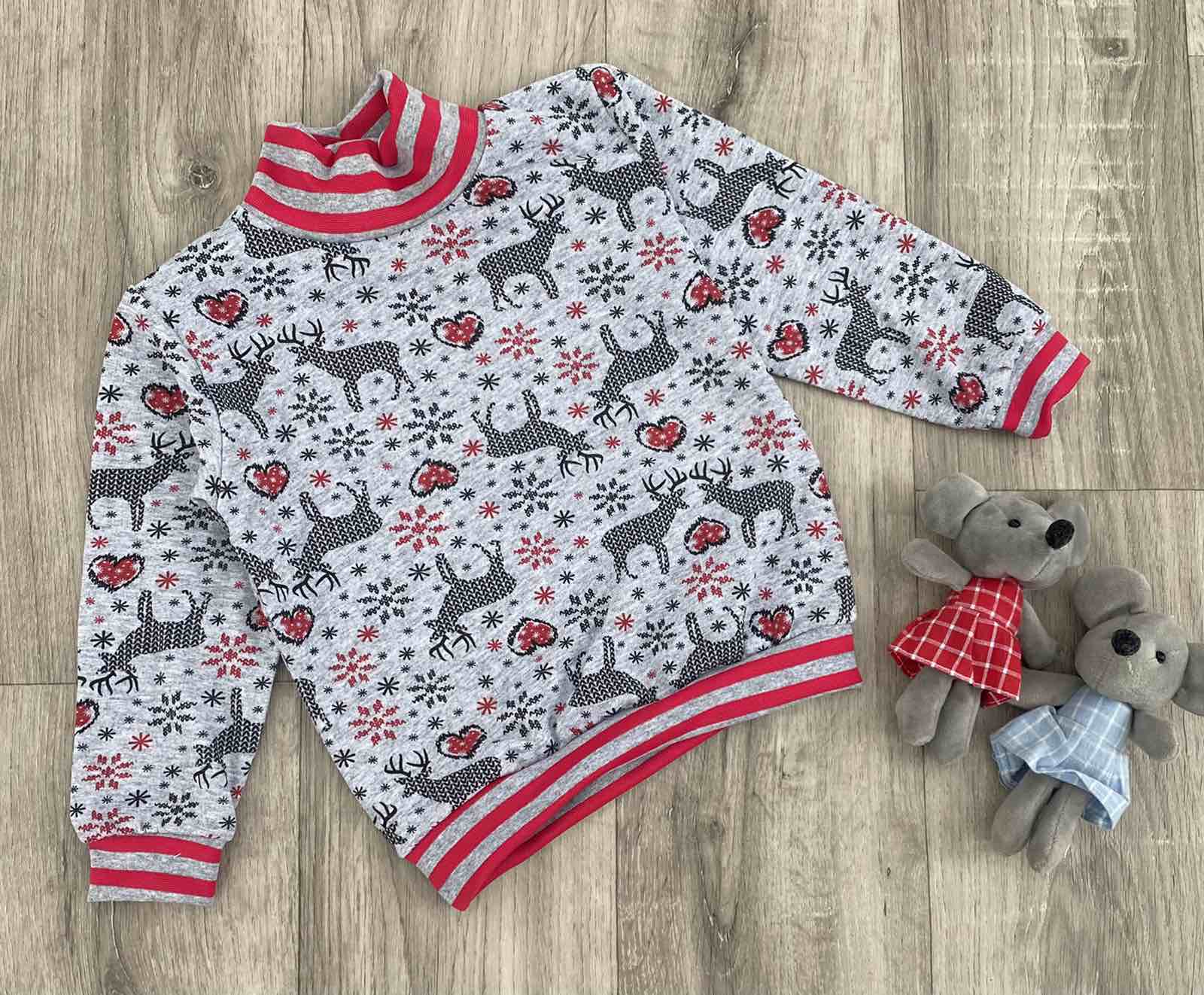 Водолазка "Новогодняя" унисекс серая с красным 2-3-4-5 лет оптом уп. - 4 шт.