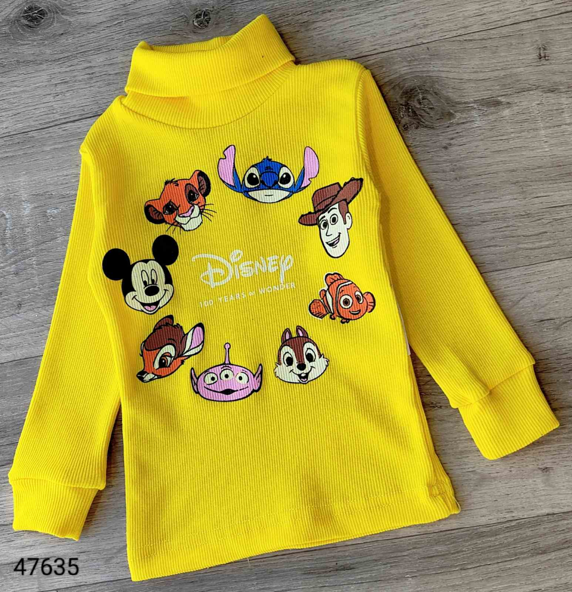 Водолазка "Wonder" желтый, унисекс 1-2-3-4-5 лет оптом уп. - 5 шт.
