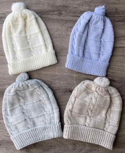 Шапочки Bebe Trico "В'язка" сірі, молочні і блакитні 0-3 місяців