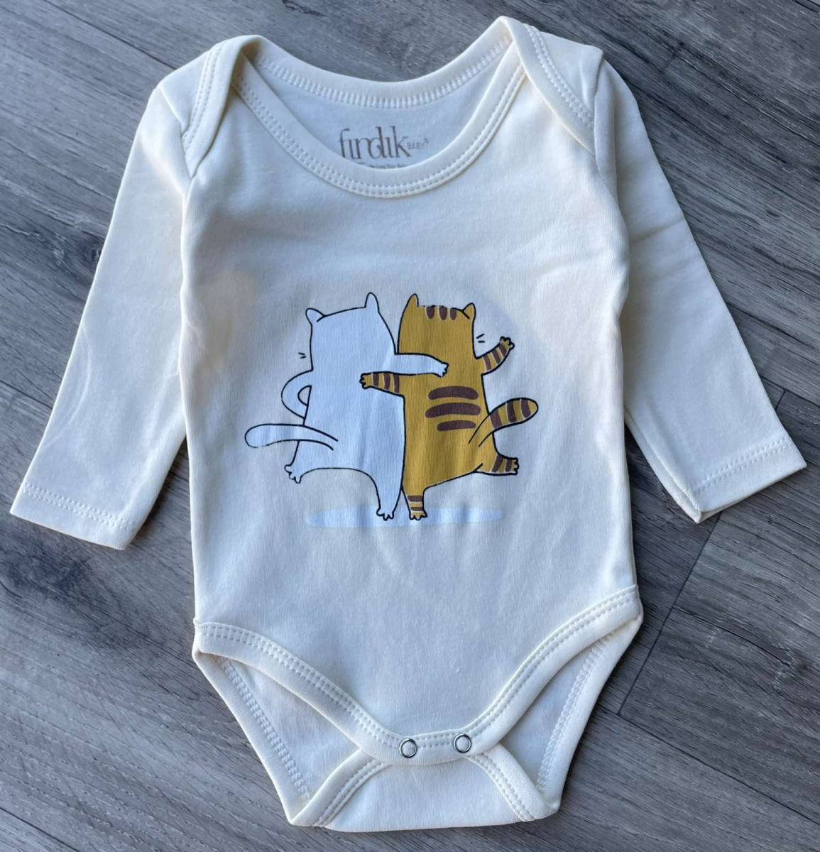 Боди Findik "Котики" кремовый, унисекс 3-6-9-12-18 месяцев оптом уп. - 5 шт.
