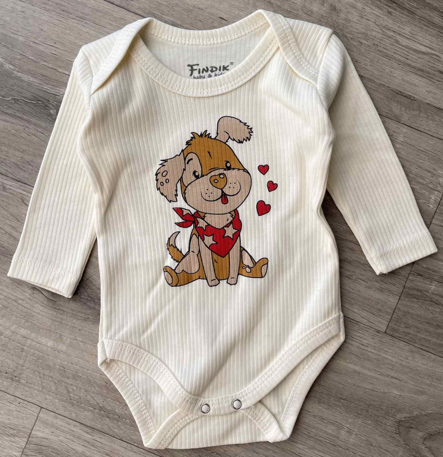 Боді Findik "Песик" молочний, хлопчик 3-6-9-12-18 місяців оптом уп. - 5 шт.