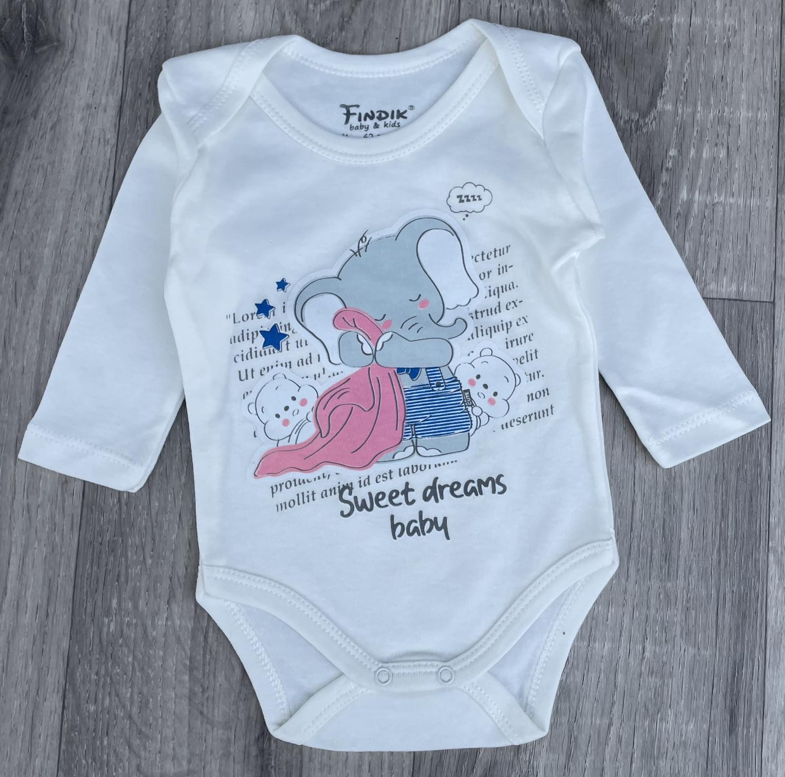 Боді Findik «Слоник» молочний, унісекс 3-6-9-12-18 місяців оптом уп. - 5 шт.