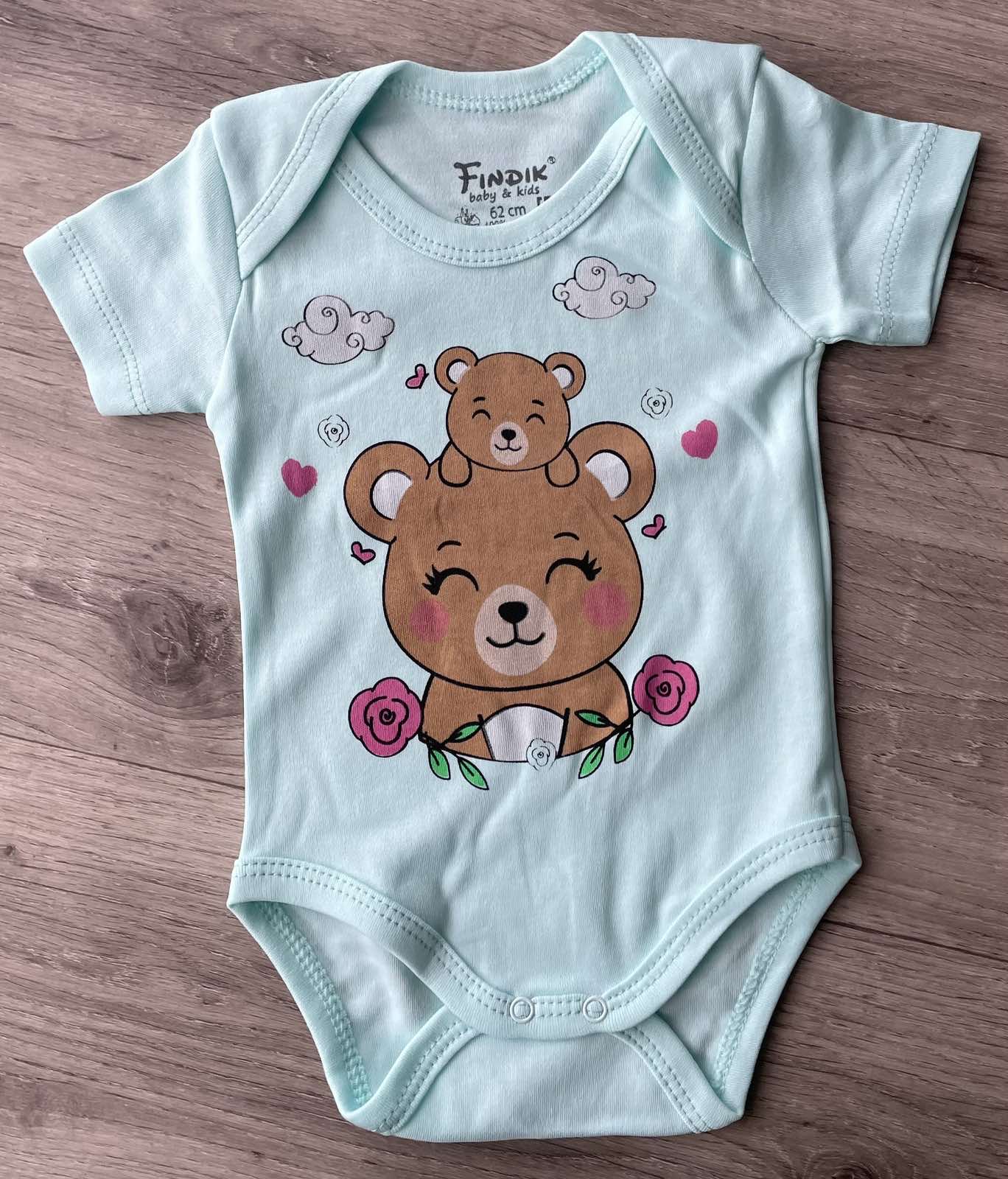 Боді Findik «Ведмедики» бірюзовий, дівчинка 3-6-9-12-18 місяців оптом уп. - 5 шт.