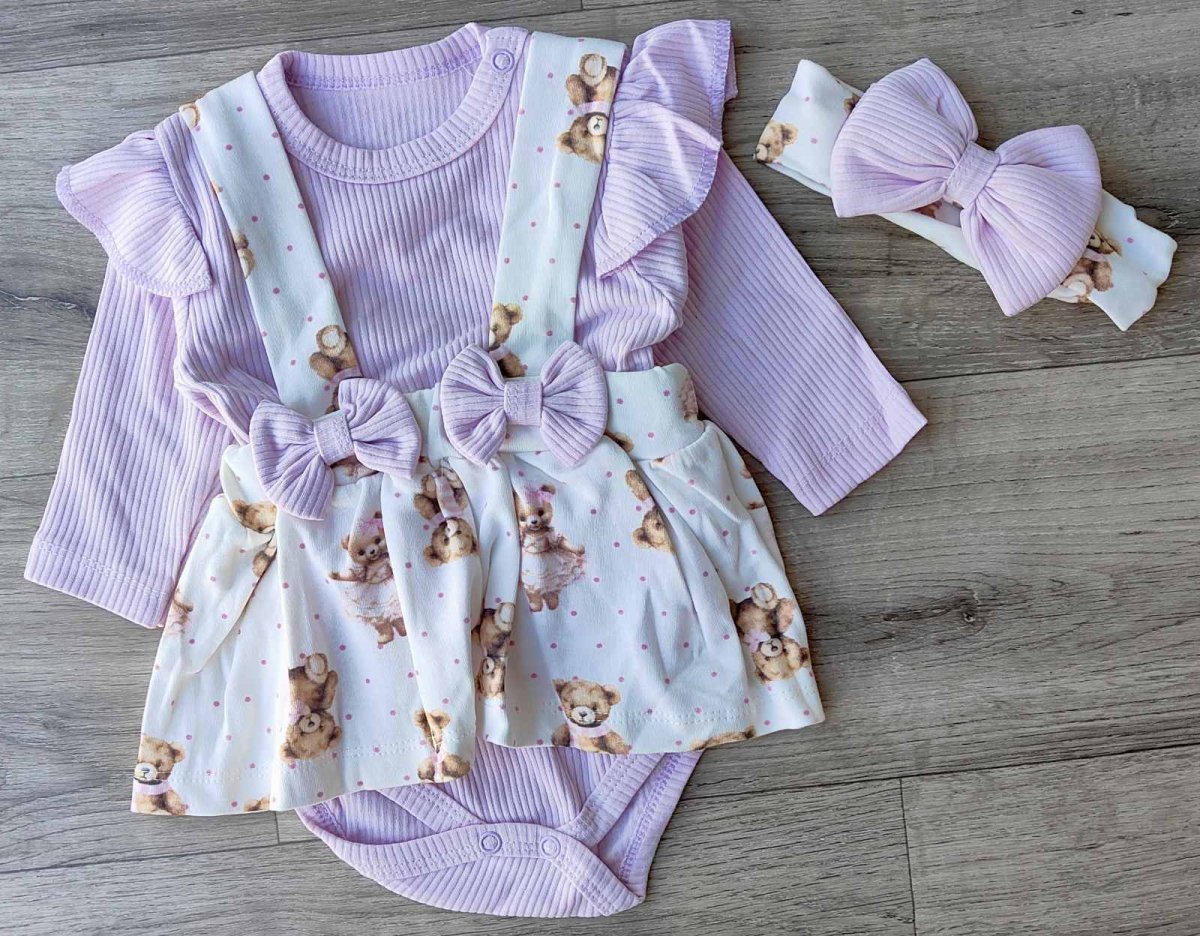 Боді-сукня "Медведик" фіолетовий(бузковий), дівчинка 3-6-9-12 місяців оптом уп. - 4 шт.