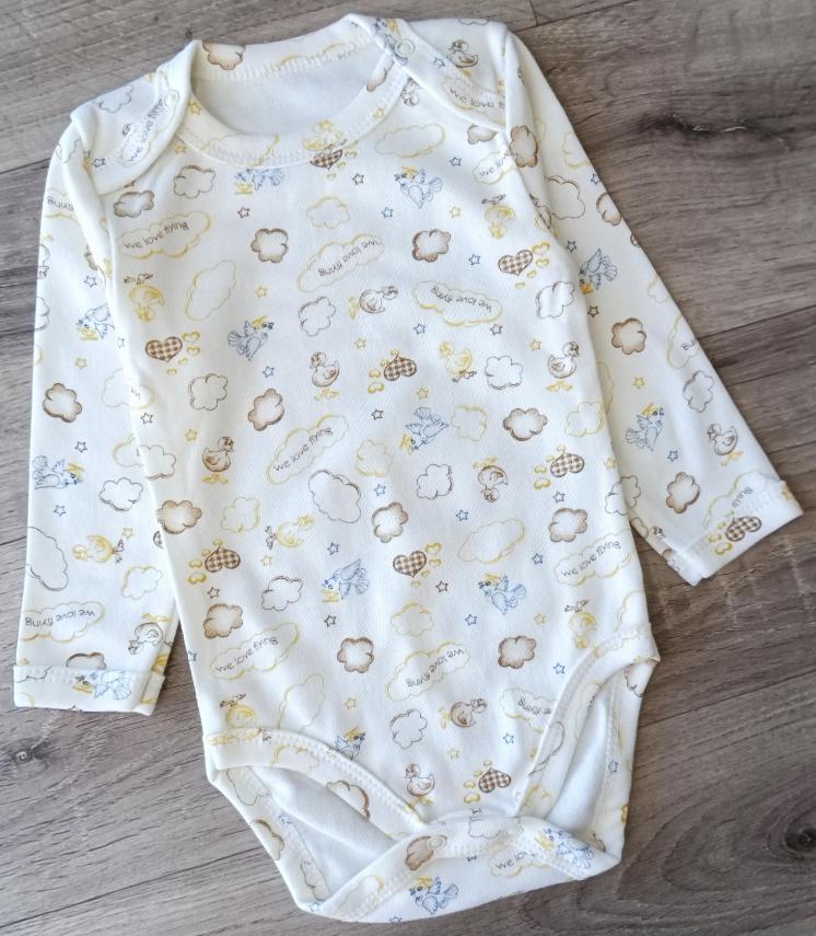 Боді "Хмари", молочний, унісекс 9-12-24-36 місяців оптом уп. - 4 шт.