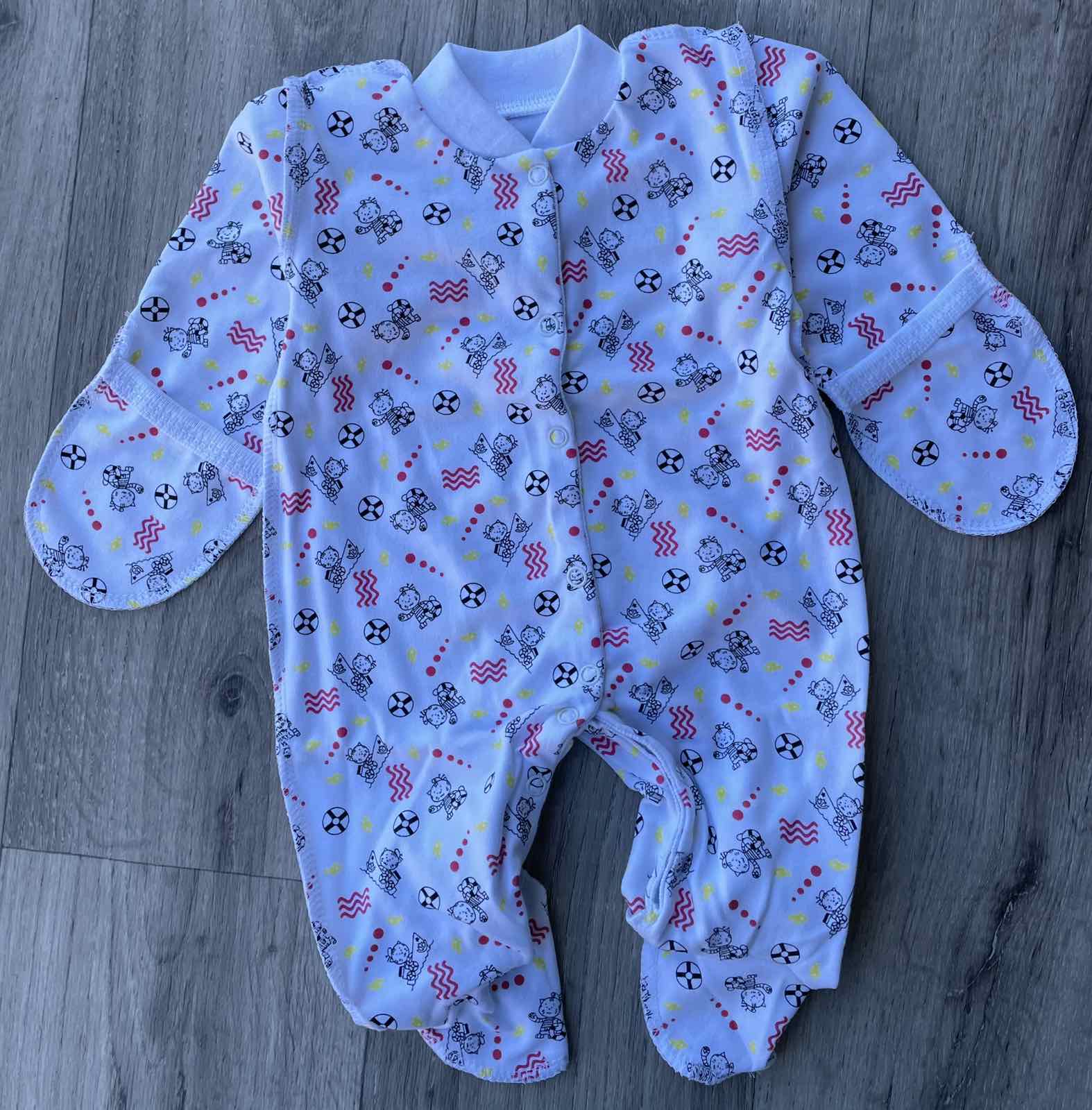 Чоловічок "Футболіст" білий, хлопчик 0-3-6 місяців оптом уп. - 3 шт.