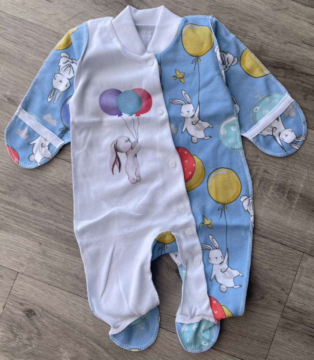 Чоловічок "Зайчик" блакитний, хлопчик 3-6-9-12 місяців оптом уп. - 4 шт.