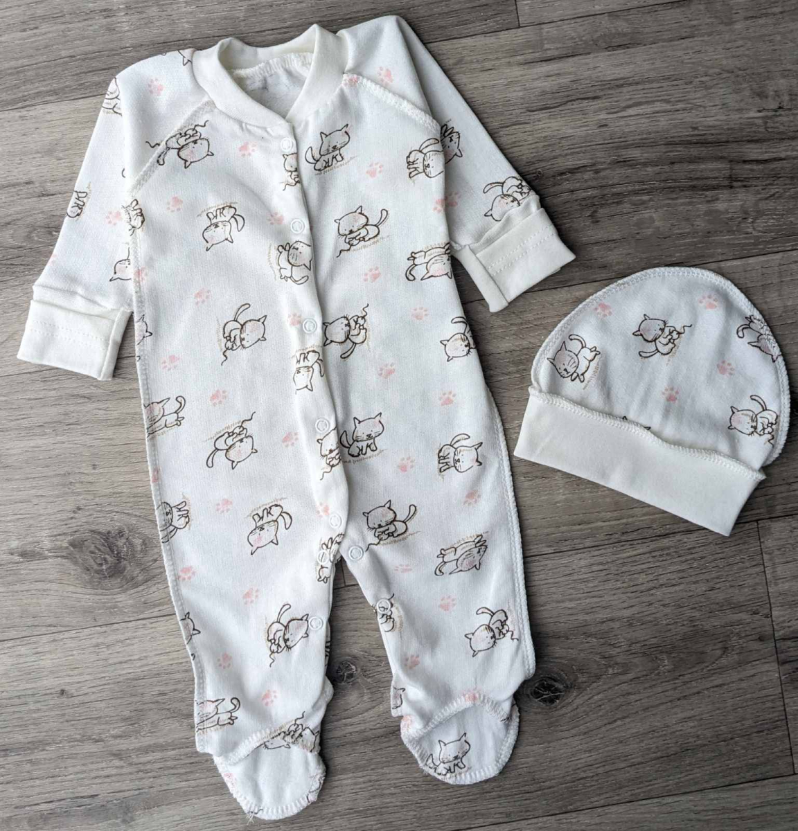 Чоловічок "Кішка" молочний, дівчинка 0-3-6 місяців оптом уп. - 3 шт.