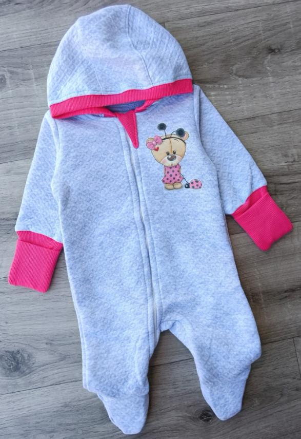 Чоловічок "Мішка" рожевий, дівчинка 0-3-6-9-12 місяців оптом уп. - 5 шт.
