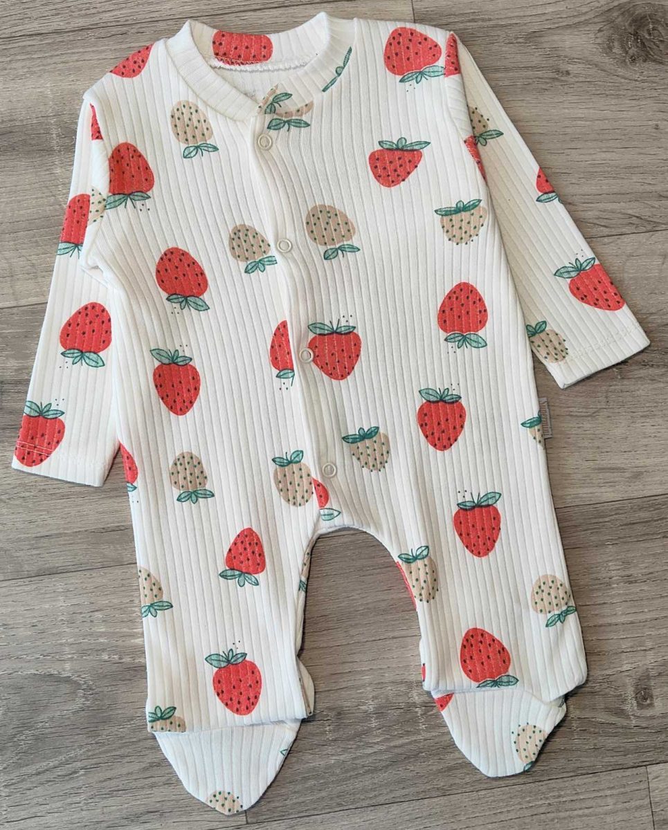 Человечек «Клубника» белый, девочка 0-3-6 месяцев оптом уп. - 3 шт.