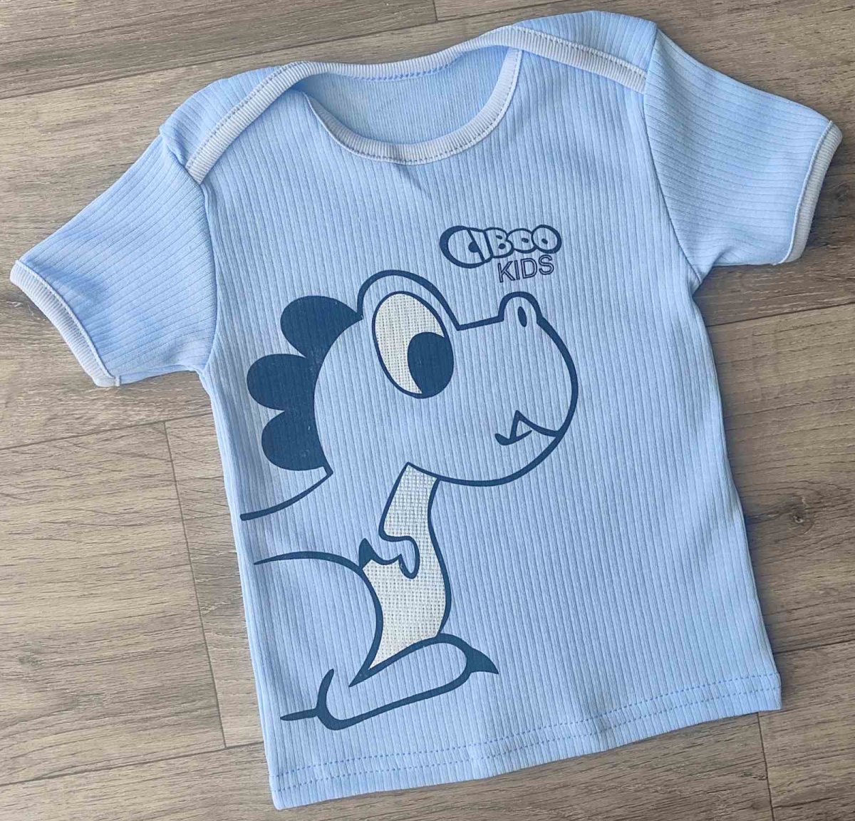 Футболка "Діно", блакитна , хлопчик 3-6-9-12 місяців оптом уп. - 4 шт.