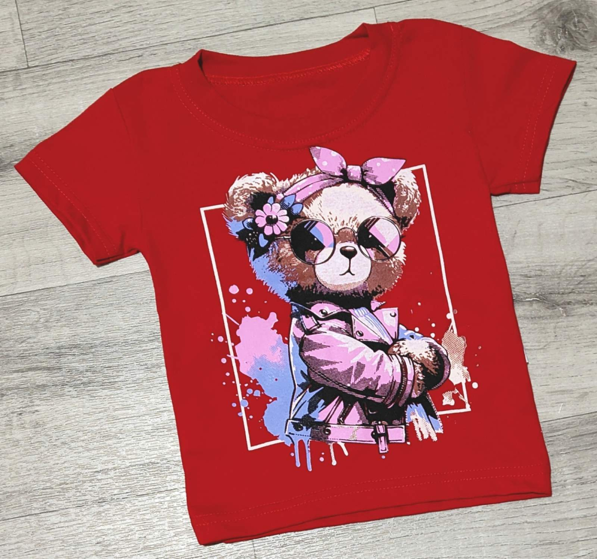 Футболка "ведмедик" червоний, дівчинка 1.5-2-3-4-5 років оптом уп. - 5 шт.