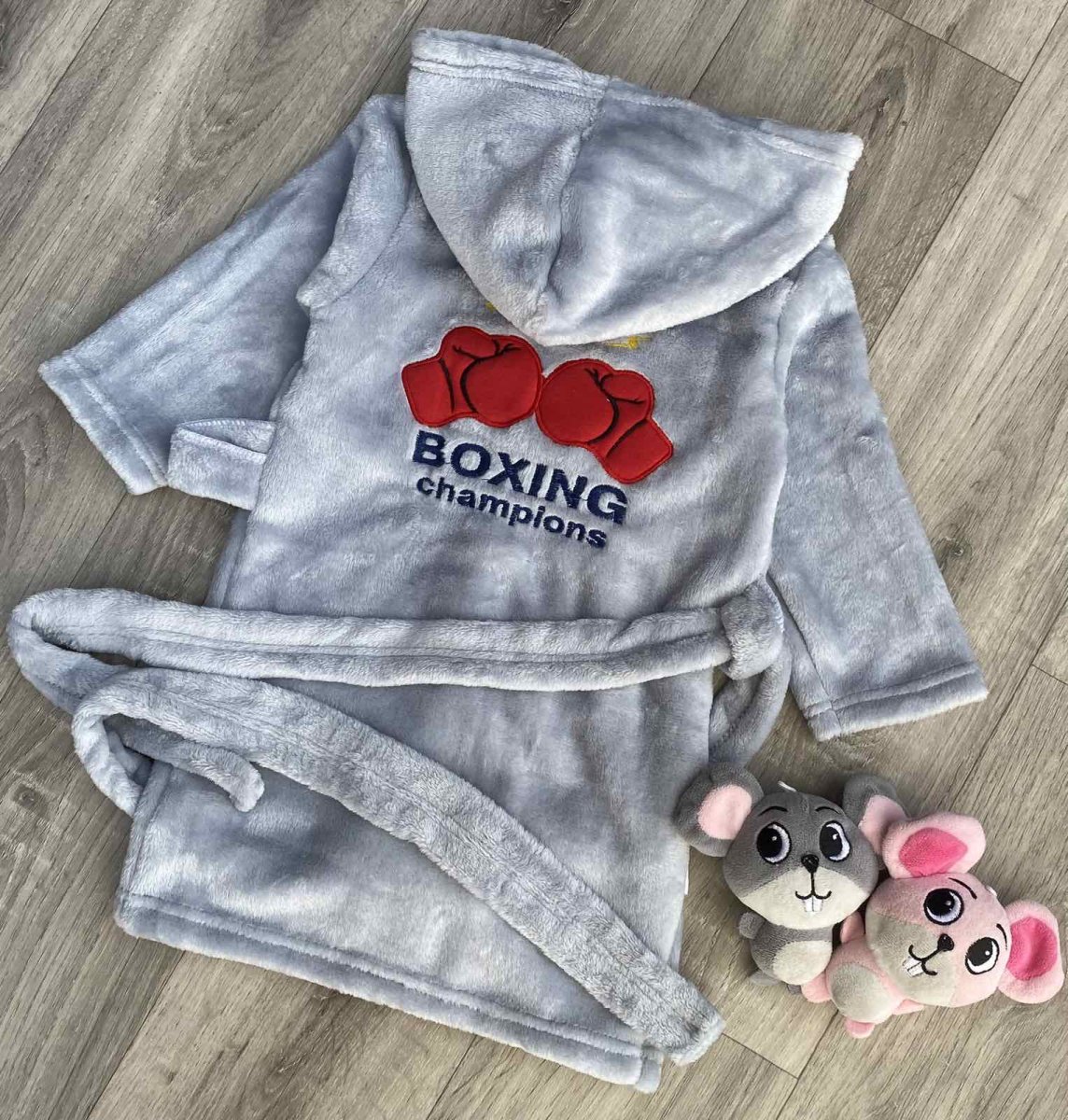 Халат "Boxing" серый, мальчик 1-2-3-4-5 лет оптом уп. - 5 шт.