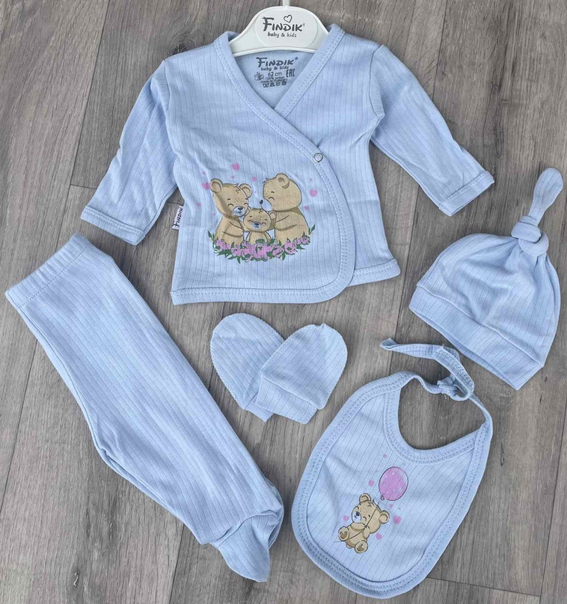 Комплект Findik «Мишки» голубой, мальчик 3-6 месяцев оптом уп. - 2 шт.