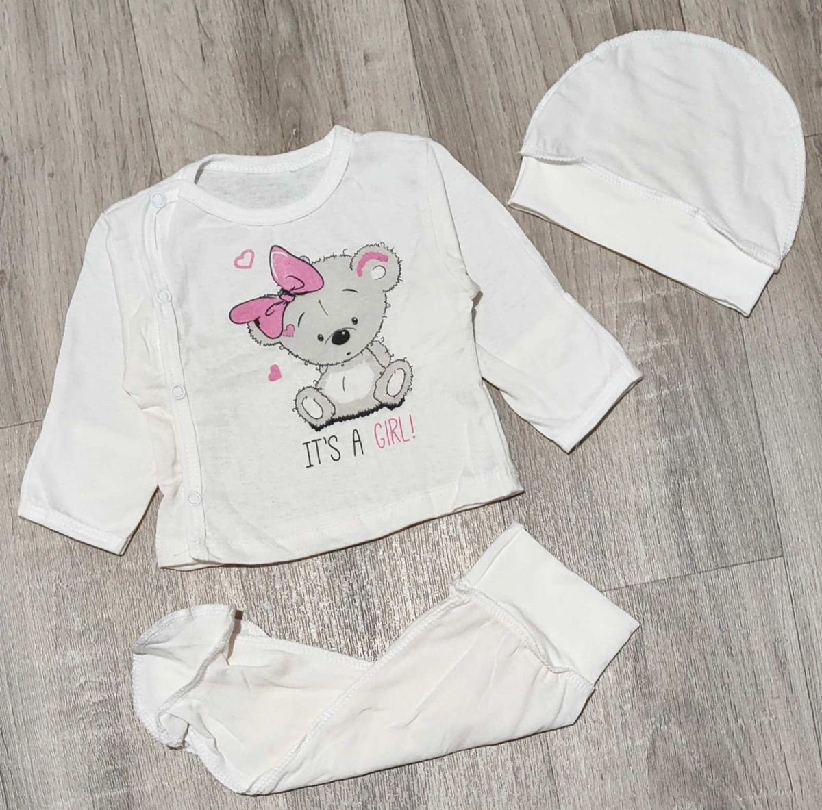 Комплект «Girl» білий, дівчинка 0-3 місяців оптом уп. - 2 шт.