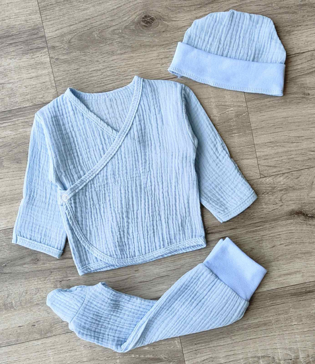 Комплект "Однотонний " блакитний, хлопчик 0-3 місяців, фото 1