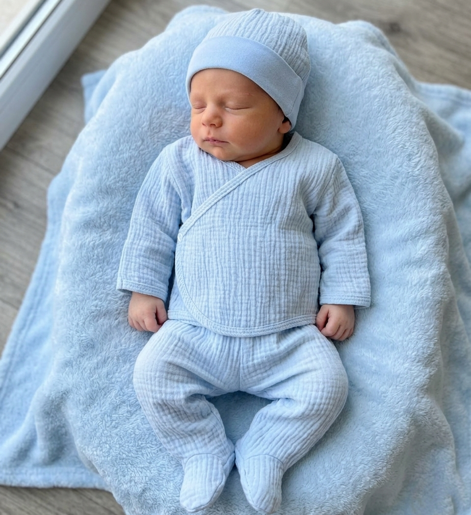 Комплект "Однотонний " блакитний, хлопчик 0-3 місяців, фото