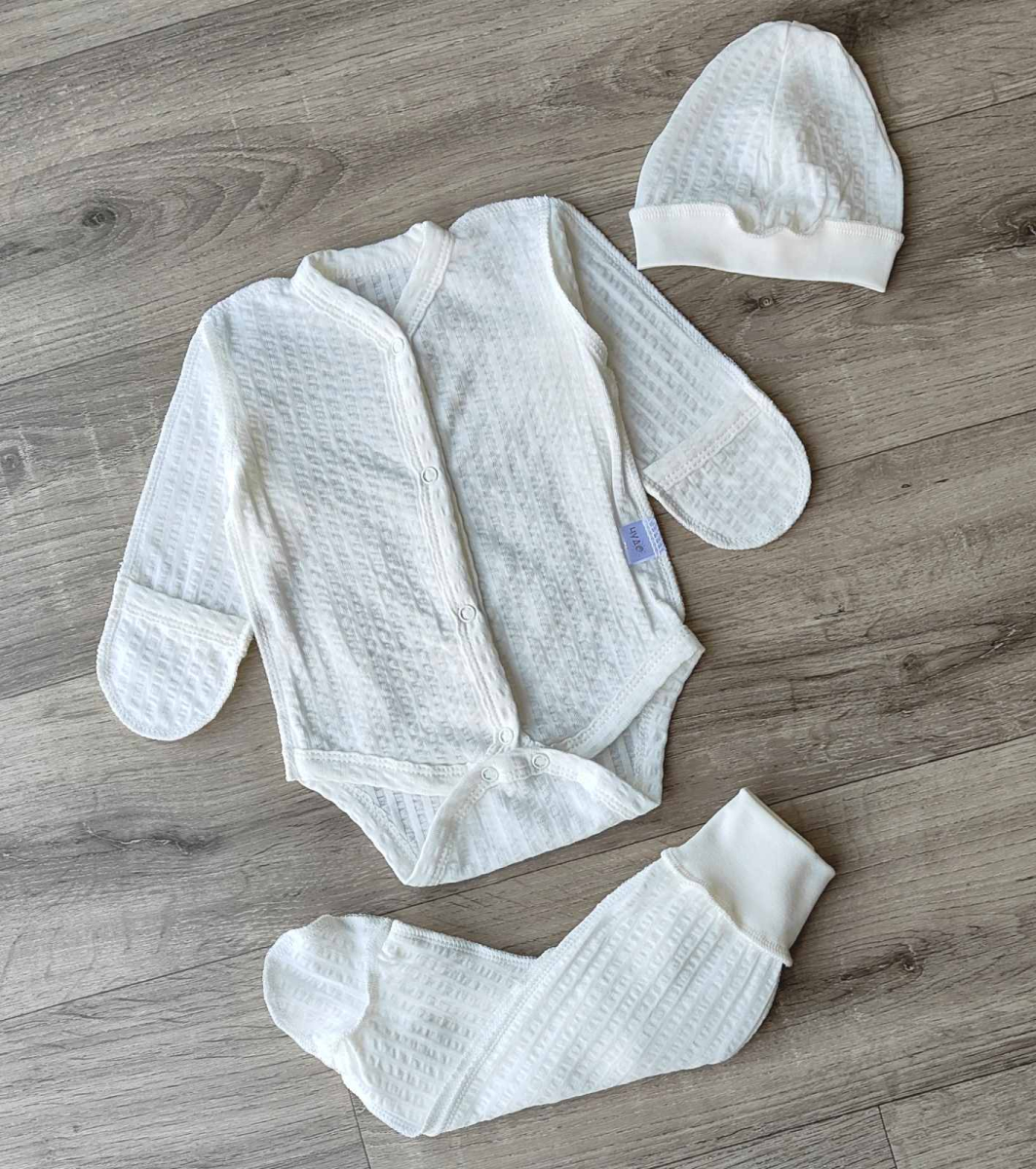 Комплект «Однотонний» молочний, унісекс 0-3 місяців оптом уп. - 3 шт.