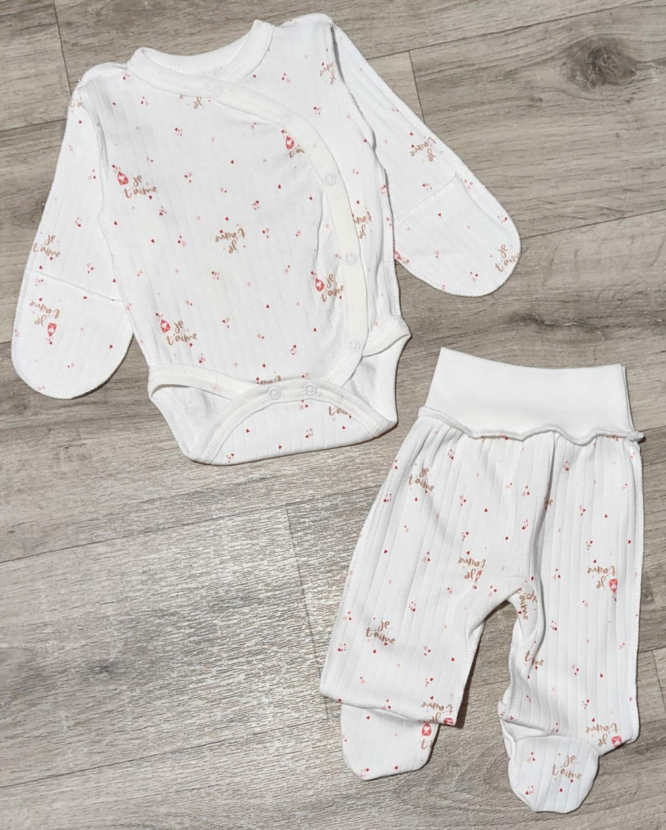 Комплект «Сердечка» білий, дівчинка 0-3 місяців оптом уп. - 2 шт.