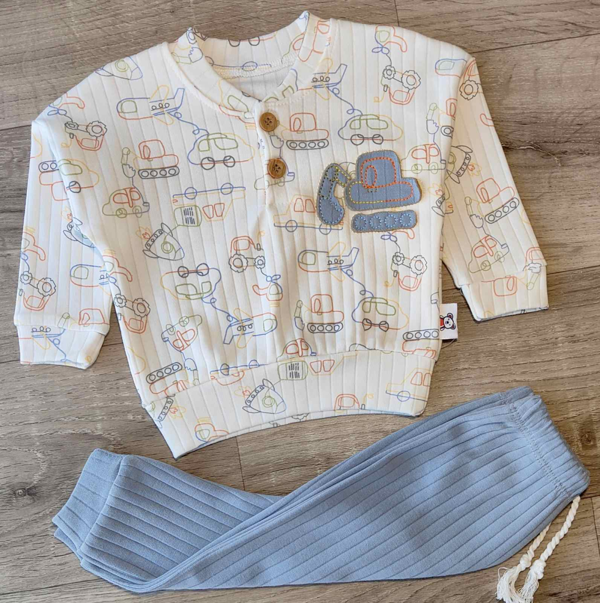 Костюм Anilco "Транспорт" блакитний, хлопчик 3-6-9 місяців оптом уп. - 3 шт.