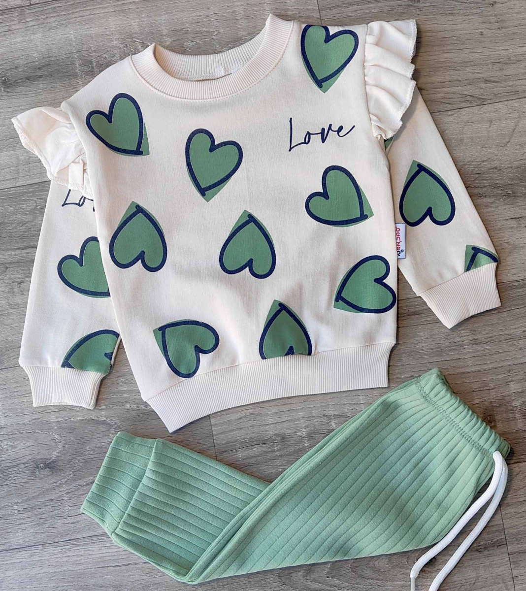 Костюм Benzer "Сердечка" зелений, дівчинка 9-12-18 місяців оптом уп. - 3 шт.