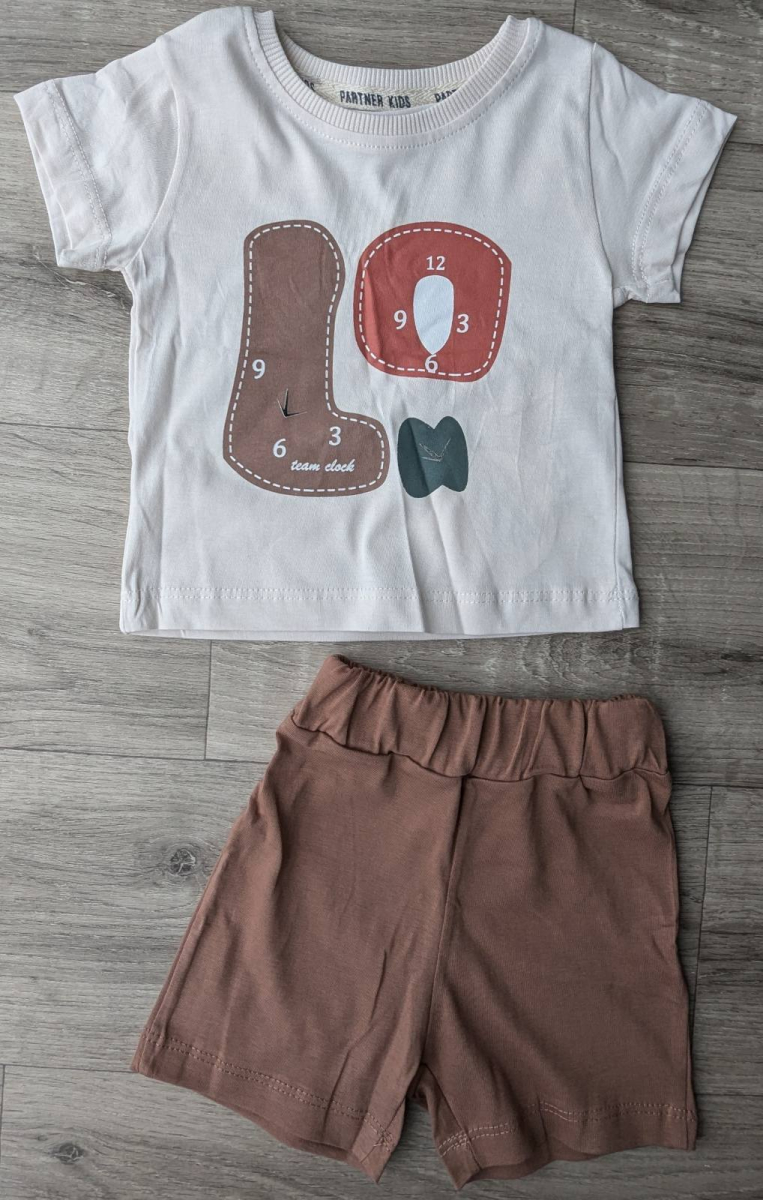 Костюм Partner «Team clock» коричневый, мальчик 9-12-18-24 месяцев оптом уп. - 4 шт.