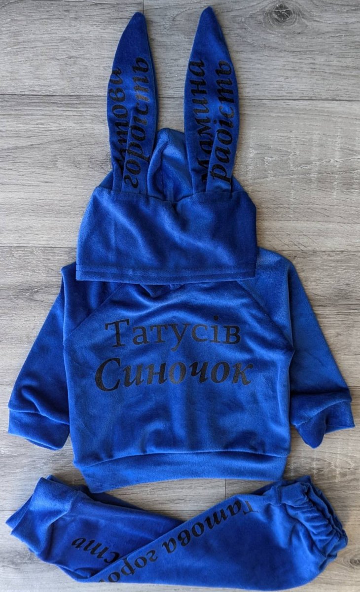 Костюм "Велюр" синій, хлопчик 9-12-24-36 місяців оптом уп. - 4 шт.