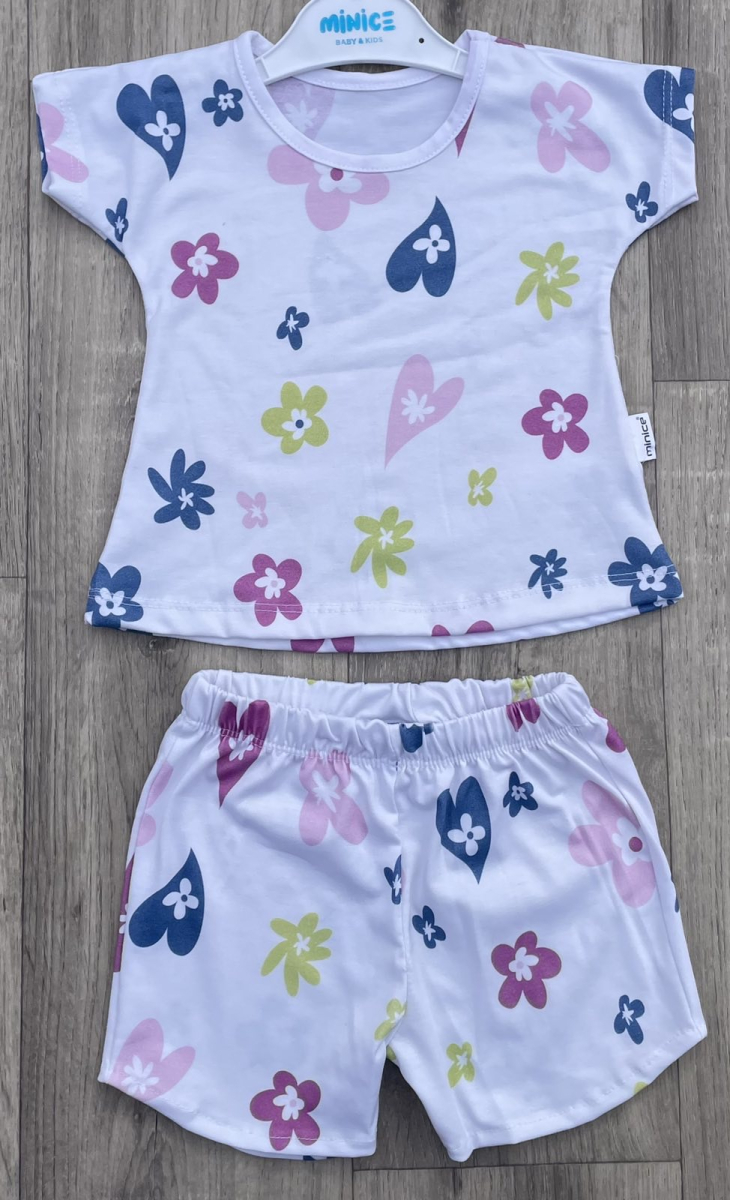 Костюм Minice «Квіточки-серця» білий, дівчинка 9-12-18 місяців оптом уп. - 3 шт.