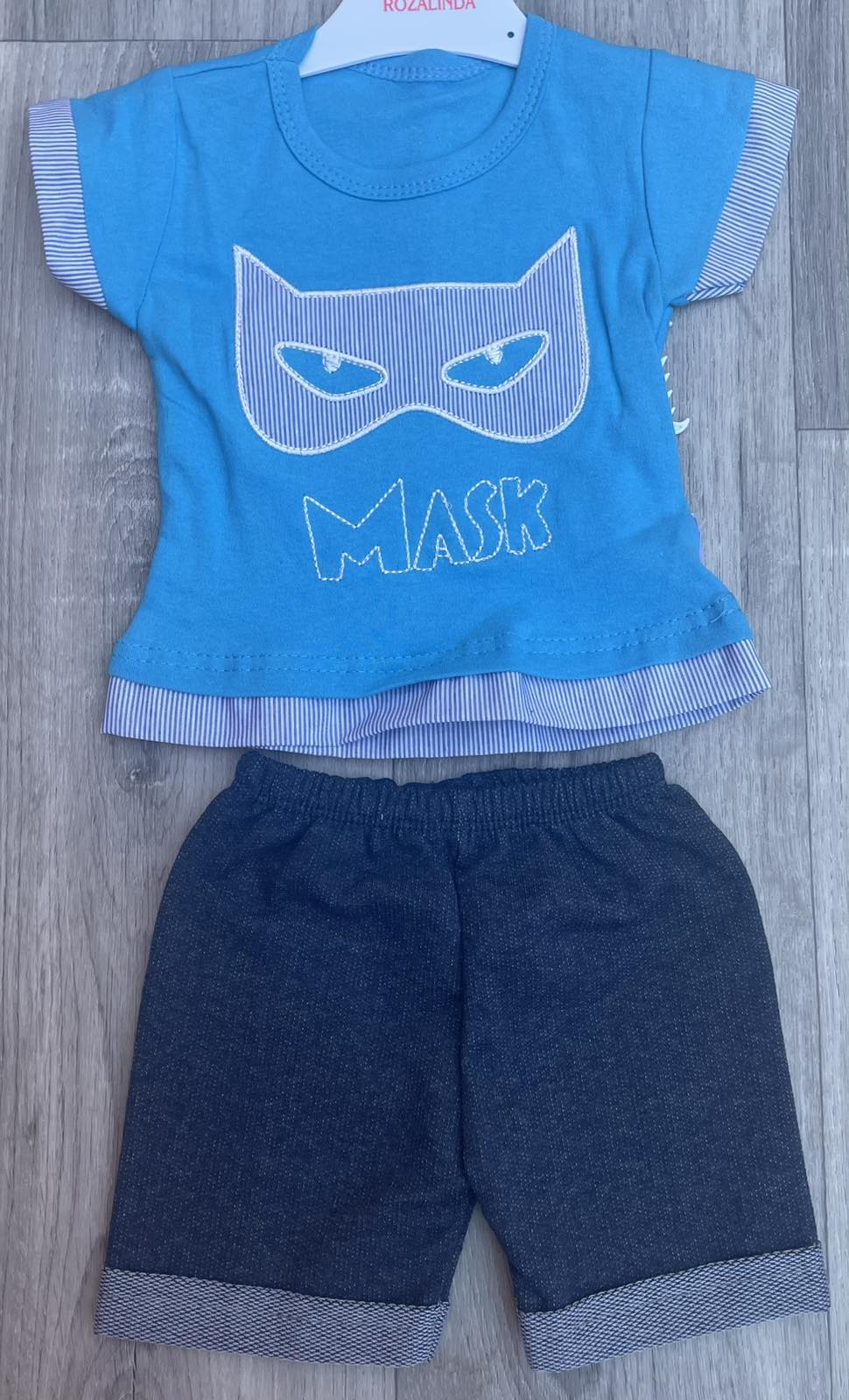 Костюм Rozalinda "Mask" блакитний, хлопчик 6-9-12 місяців оптом уп. - 3 шт.