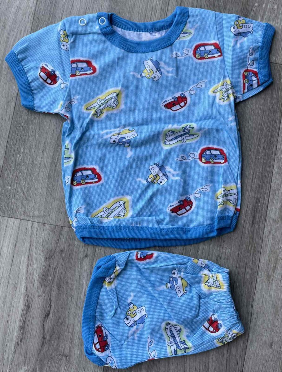 Костюм "Транспорт" блакитний, хлопчик 6-9-12 місяців оптом уп. - 3 шт.