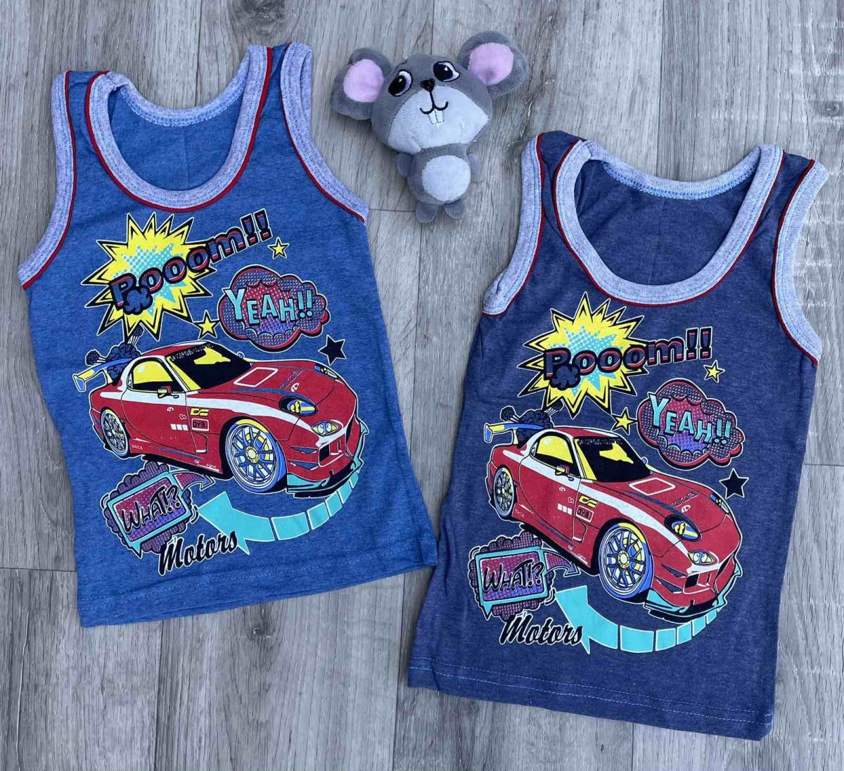 Майка "Boom" різні кольори, хлопчик 1-2-3-4-5 років оптом уп. - 5 шт.