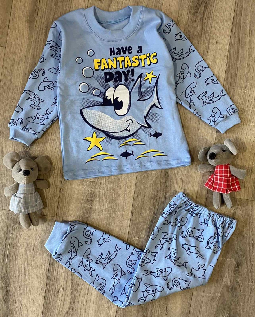 Піжама " Акула" блакитна, хлопчик 1-2-3-4-5 років оптом уп. - 5 шт.