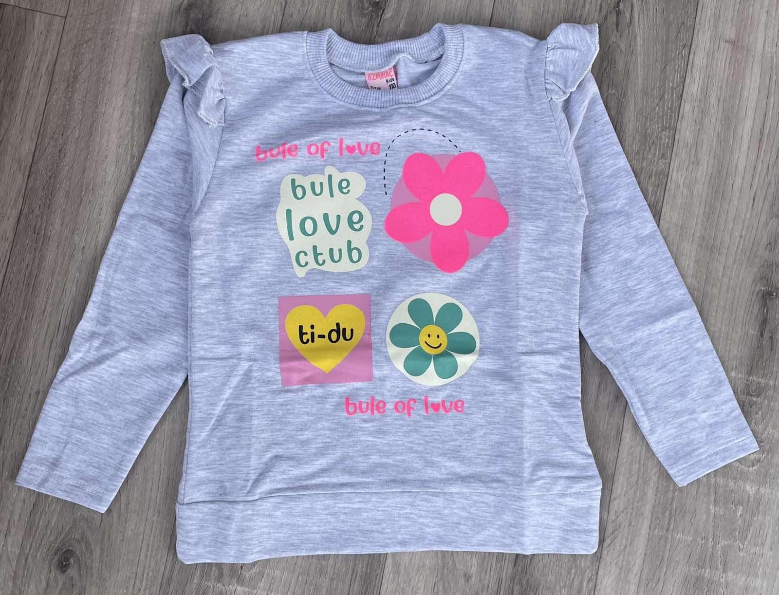 Реглан O.T.R «Цветочки» серый, девочка 9-10-11-12 лет оптом уп. - 4 шт.