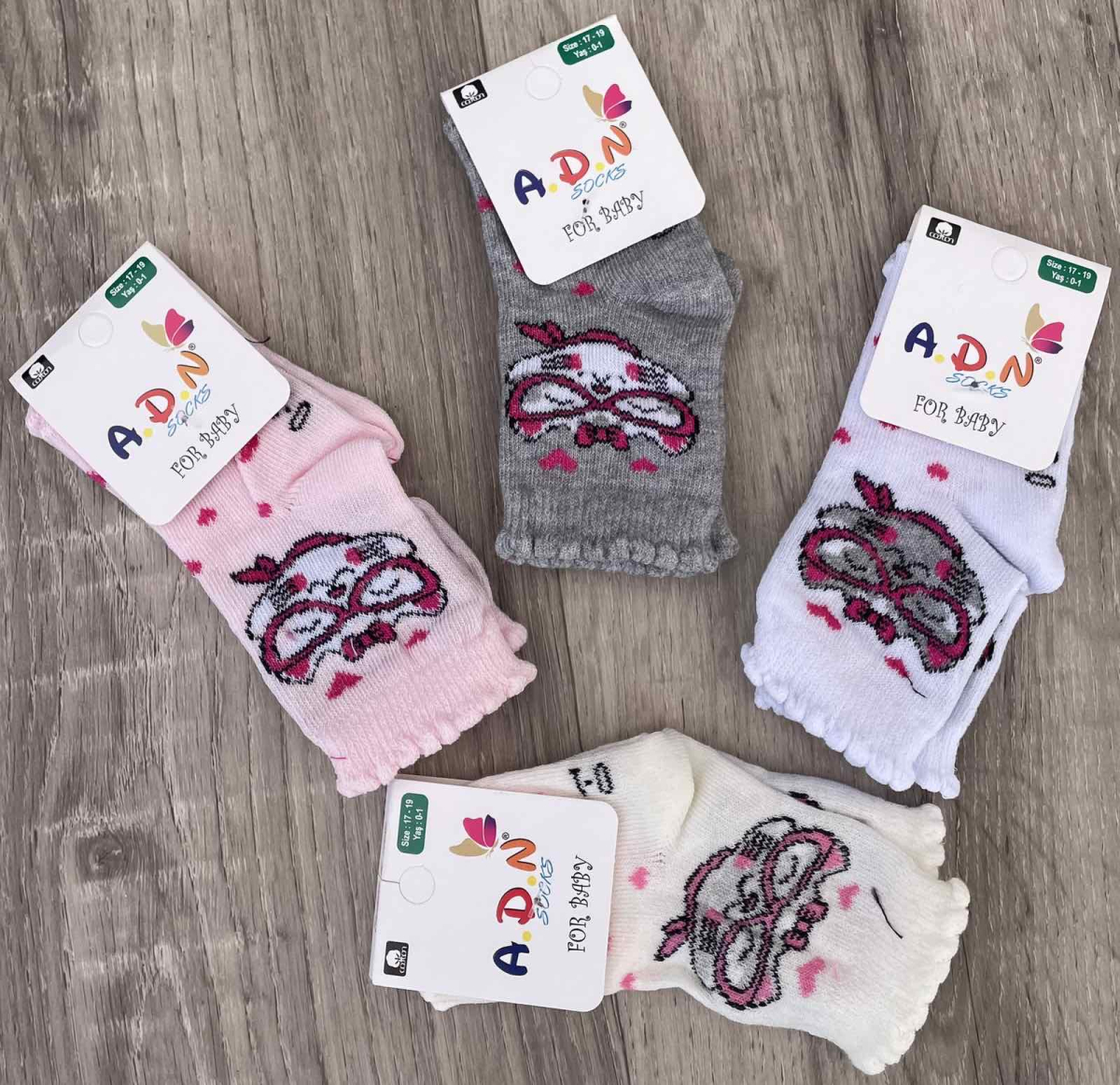 Шкарпетки ADN «Кішечка» мікс кольорів, дівчинка 0-12 месяцев оптом уп. - 12 шт.