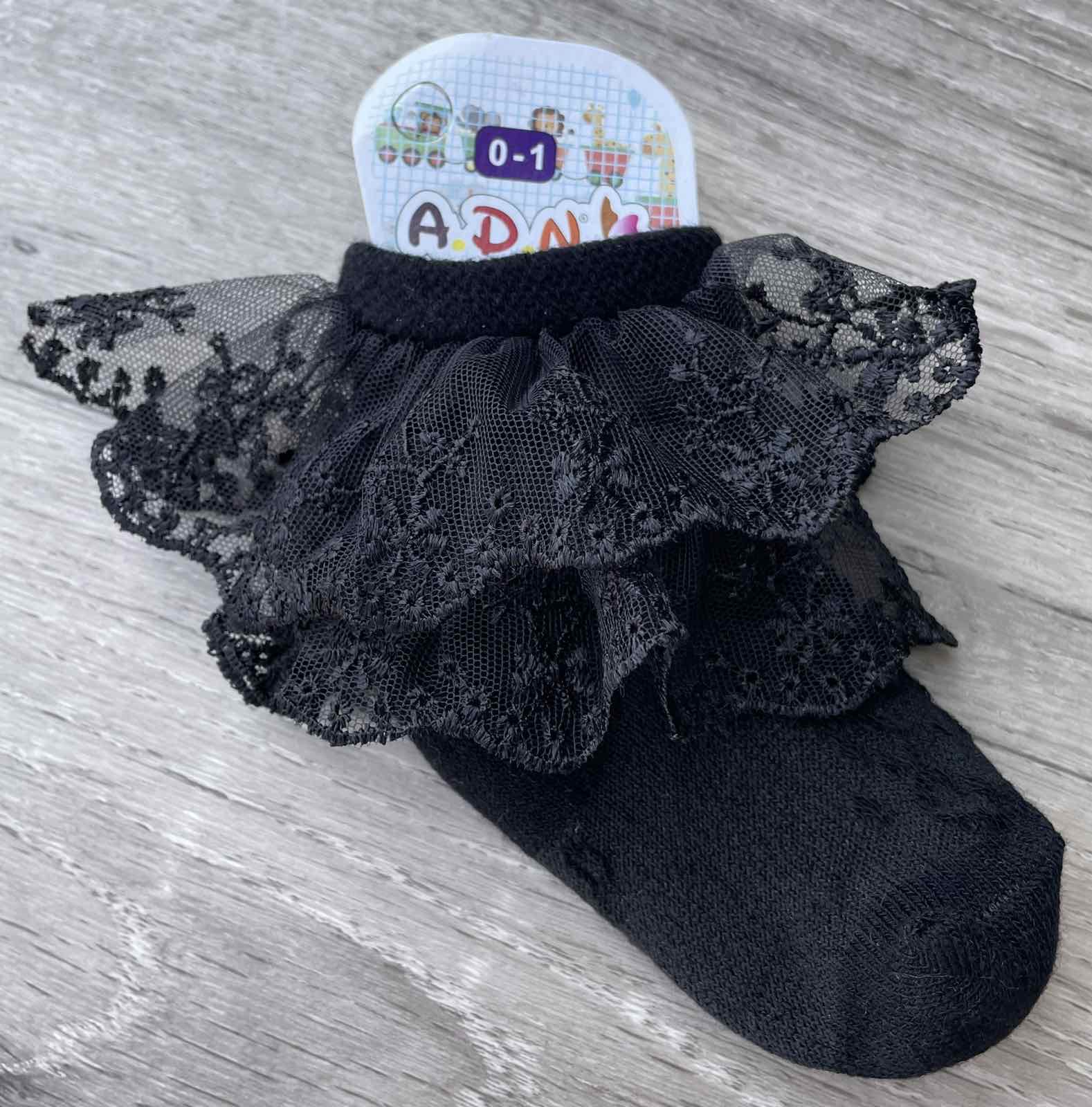 Шкарпетки ADN «Кружево» чорний, дівчинка 1-2 роки оптом уп. - 12 шт.