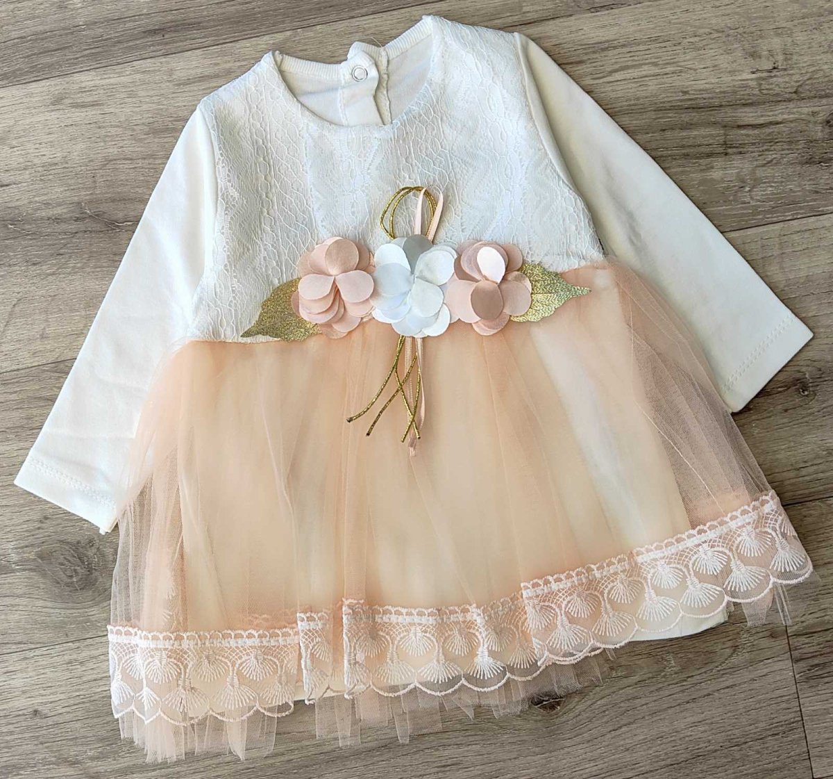 Сукня "Квіточки" персиковий, дівчинка 6-9-12-18 місяців оптом уп. - 4 шт.