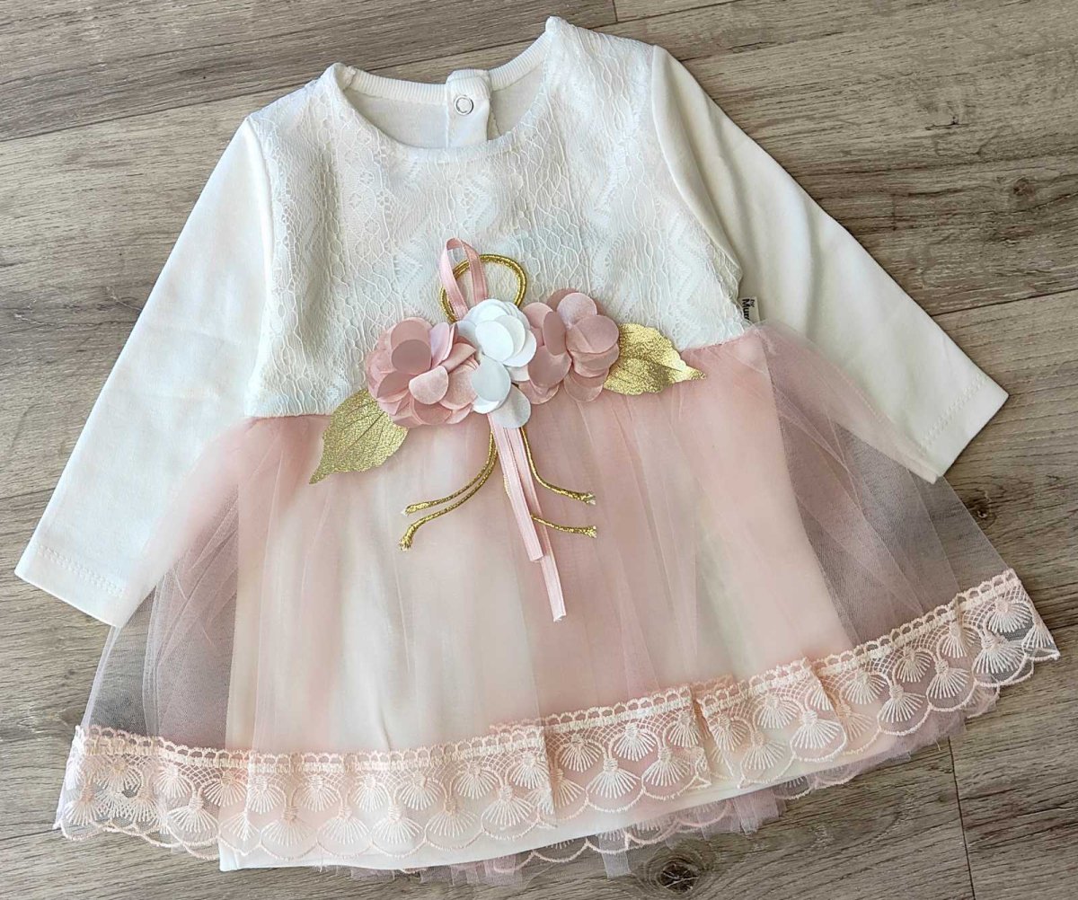 Платье "Цветочки" розовый(пудра), девочка 6-9-12-18 месяцев оптом уп. - 4 шт.