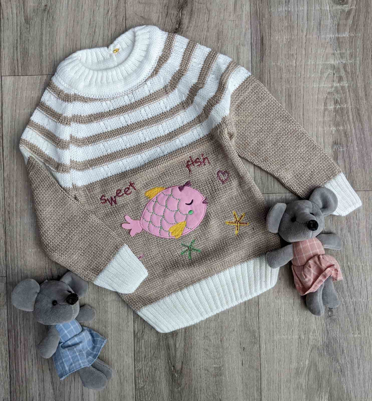 Светр Miniloya «Рибка» коричневий, дівчинка 1-2-3 роки оптом уп. - 3 шт.